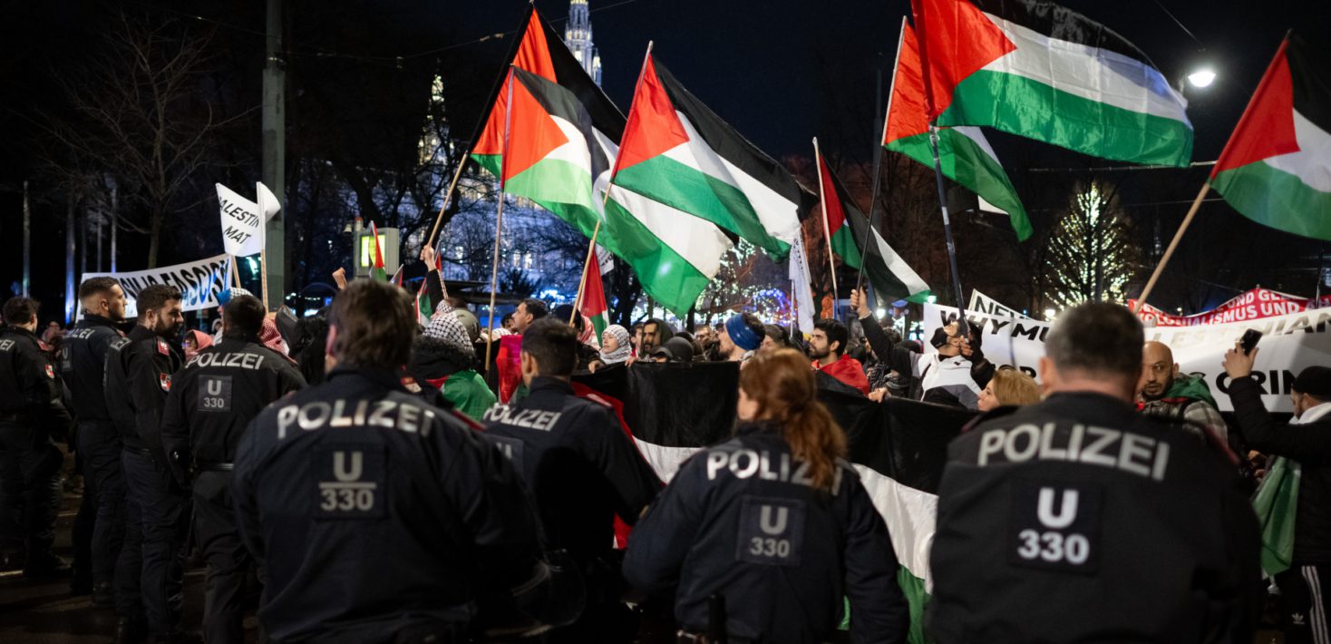 فعلى سبيل المثال، فرضت السلطات قيودًا غير مشروعة على الحق في التجمع السلمي فيما يتعلق بالهتاف المستخدم بشكلٍ كبير “من البحر إلى النهر، ستكون فلسطين حرّة”، وقد حظرت الشرطة ما لا يقلّ عن سبعة تجمّعات في فيينا بحجة احتمال ترديد هذا الهتاف. وعلاوةً على ذلك، يخضع هذا الهتاف لمرسومٍ غير عام أصدرته وزارة العدل. وبحسب الوزارة، فإن مجرّد استخدام هذا الهتاف يكفي لإثارة شبهة أولية بـ”تأييد الجرائم الإرهابية”، ما قد يعرّض أي شخص يردّده للتحقيق. ومع أن هذا الهتاف تستخدمه مجموعات مختلفة ويحمل دلالات متعددة، فإن الاستراتيجية الوطنية لمكافحة معاداة السامية تُعدّه مضاهيًا للدعوة إلى إنكار وجود دولة إسرائيل.